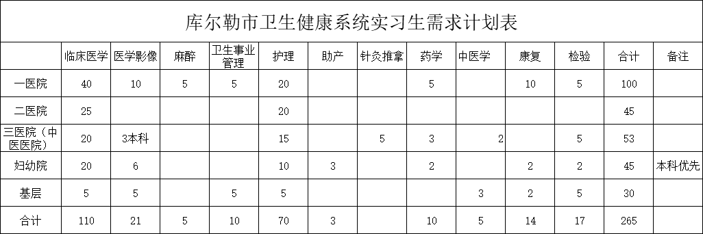 库尔勒市卫生健康系统与8040威尼斯于2020年5月18日(星期一)上午09:00(北京时间),在8040威尼斯举行专场供需招聘会,公开招聘库尔勒市卫生系统专业技术人员。现将有关事宜公告如下: